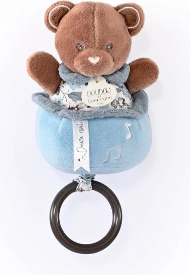 Roztomilý plyšový medvedík v elegantnej darčekovej krabičke je naťahovací a prehráva jemnú uspávanku, ktorá upokojuje bábätko počas dňa aj večera. Skvelý ako darček pre novorodencov, podporuje pocit bezpečia a rozvoj predstavivosti.