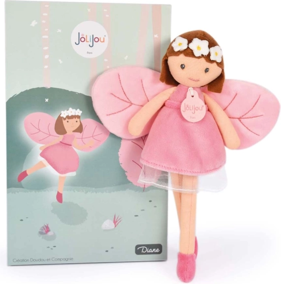 Bábika Diana je jemná lesná víla s kvetinovou čelenkou, ktorá podporuje detskú fantáziu a rozvíja kreatívne hranie. Vďaka precíznemu spracovaniu z mäkkých textílií je vhodná na objímanie aj maznanie počas dňa i noci. Bezpečné prevedenie bez malých odnímateľných častí a vyšívané detaily z nej robia skvelého spoločníka pre bábätká aj staršie deti.