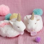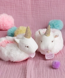 Doudou darčeková sada obsahuje plyšové čižmičky s motívom jednorožca v nádhernom darčekovom balení. Tieto čižmičky sú vyrobené z kombinácie bielej, ružovej a zlatých prvkov, ktoré dodajú vášmu dieťaťu štýlový vzhľad. Hlavné vlastnosti: