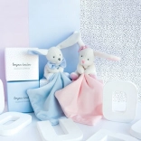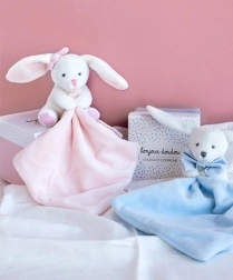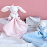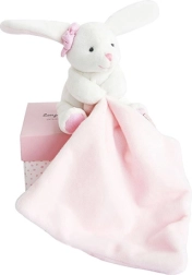 Tento rozkošný zajko v elegantnej darčekovej krabičke je nevyhnutnosťou pre každé novorodené bábätko. V bielom prevedení s ružovým muchláčikom je zajko extrémne mäkký a rýchlo sa stane najlepším spoločníkom pre vaše dieťa. Malá dečka v labke slúži ako ľahko uchopiteľný muchláčik.