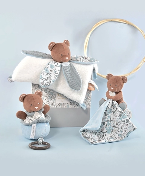 Doudou plyšový medvedík s dečkou je ideálny spoločník pre vaše bábätko od narodenia. Prináša hebkosť, pohodlie a objatie, čo rozvíja zmysly a zvedavosť detí.