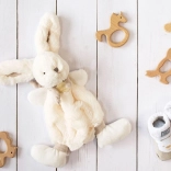 Krémová farba a béžové uši králika spolu s moderným dizajnom darčekovej krabičky tvoria ideálny darček pre každú špeciálnu príležitosť: