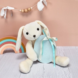 Tento veľký zajačik môže slúžiť ako kamarát, vankúšik alebo dekorácia detskej izby. Je vyrobený z prémiového mäkkého plyšu a spĺňa všetky európske normy CE. Ideálny ako darček na Vianoce alebo na oslavu narodenia bábätka.