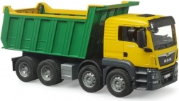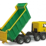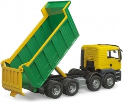 Sklápací MAN TGS od Bruder je dokonalý model pre malých staviteľov. Tento robustný nákladný voz s detailnou kabínou môže otvárať dvere a ponúka tak deťom možnosť nasadiť figúrky a vytvoriť si vlastný stavebný scenár. Zadná sklápacia korba sa automaticky otvára pri vysypávaní nákladu, čo prináša ešte viac zábavy.