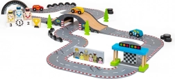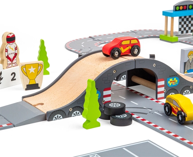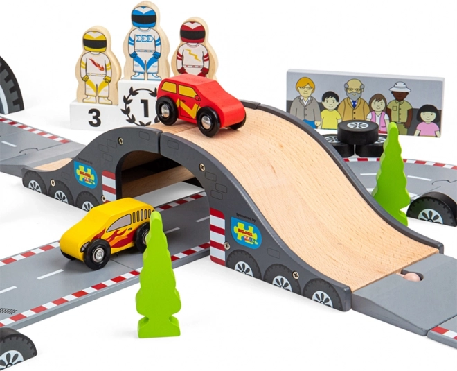 Objavte krásu klasického pretekania s touto nádhernou drevenou autodráhou od Bigjigs Rail. Autodráha zahŕňa: