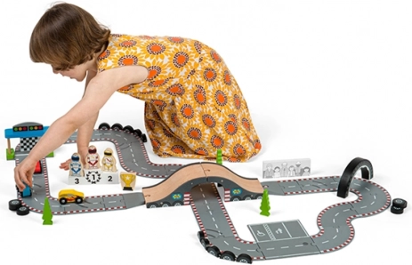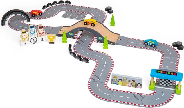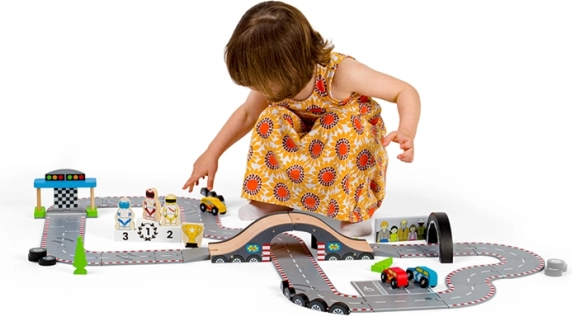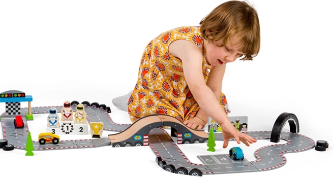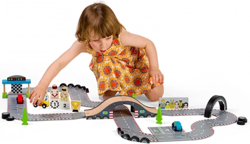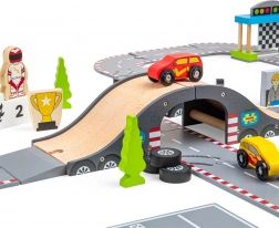 Hra s touto autodráhou pomáha rozvíjať koordináciu pohybov, jemnú motoriku a podporuje predstavivosť. Vyrobené z kvalitných surovín podľa aktuálnych európskych bezpečnostných noriem. Možno kombinovať s ďalšími sadami Bigjigs Rail a rozšíriť tak herné možnosti.