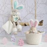 Tento hebký zajačik kombinuje hneď tri funkcie v jednom: mojkací maznáčik, jemná hrkálka na rozvoj sluchu a držiak na cumlík, vďaka ktorému bude cumlík vždy po ruke.