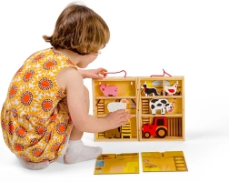 Deti môžu objavovať svet farmy, pomenúvať zvieratká a vytvárať vlastné príbehy. Sada rozvíja slovnú zásobu, motoriku aj sociálne zručnosti pri spoločnej hre. Vďaka výrazným farbám a autentickým detailom farmy je hra prirodzene príťažlivá a dlhodobo zábavná.