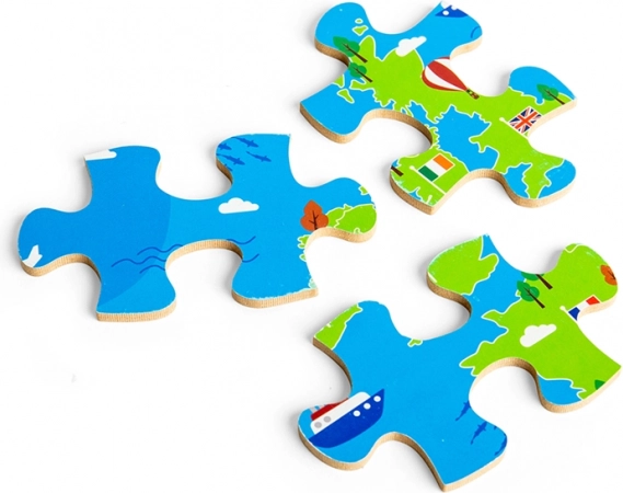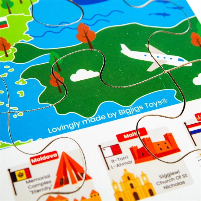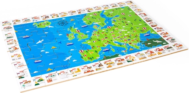 Objavujte Európu hravou formou s dreveným podlahovým puzzle Bigjigs Toys – mapou Európy s 48 dielikmi. Deti od 2 rokov si pri skladaní precvičia jemnú motoriku, sústredenie a naučia sa spoznávať vlajky aj slávne pamiatky. Veľké, pevné dieliky sa ľahko držia a puzzle je vyrobené z kvalitného, zodpovedne získaného dreva, ktoré spĺňa európske bezpečnostné normy.