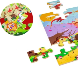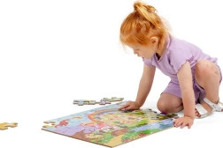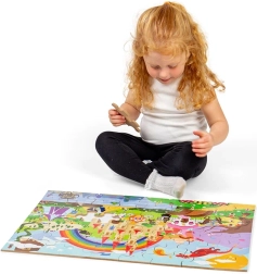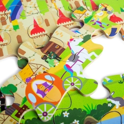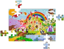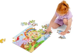 Podlahové puzzle Bigjigs Toys Fantazijný svet prináša deťom hravý vstup do ríše kúziel a nadprirodzených bytostí. Veľké, ľahko uchopiteľné dieliky z pevného dreva uľahčujú skladanie, rozvíjajú koordináciu ruka–oko a učia rozpoznávať farby a tvary. Ideálne prvé väčšie puzzle pre malých objaviteľov.