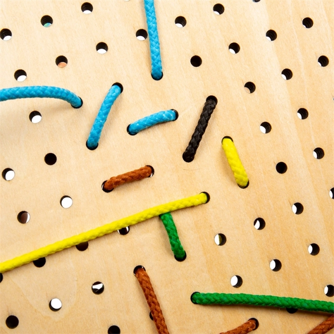 Prešívanie dielikov cez otvory prirodzene trénuje úchop, presnosť pohybu a koordináciu oko–ruka – ideálna príprava na písanie.