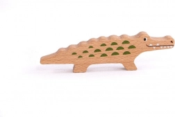 Sada obsahuje realisticky štylizované figúrky: slona, gorilu, zebru, leva, tigra, nosorožca, hada, žirafu, krokodíla, tukana a opicu. Každý kúsok je ručne dokončený v minimalistickom dizajne, ktorý necháva vyniknúť prirodzenú kresbu dreva. Vďaka hladkým hranám a pevnej konštrukcii sú hračky príjemné na dotyk a vydržia každodenné hranie.