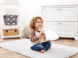 Extra mäkký plyš a jemné prevedenie sú vhodné pre bábätká už od narodenia – ideálne do postieľky aj kočíka.