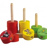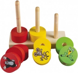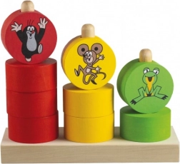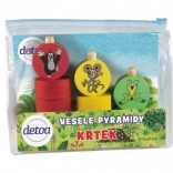 Veselé pyramidy Krtko ponúkajú deťom skvelú príležitosť k rozvoju jemnej motoriky a kreativity. Tri farebné tyčky a 12 navliekateľných dielov s veselými motívmi zaujmú každé dieťa. Výrobok je vyrobený z kvalitného dreva, čo zaručuje jeho tradičné a odolné spracovanie.