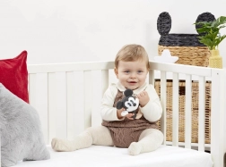 Kombinácia hladkého dreva a mäkkých textílií je šetrná k detským rúčkam a ponúka bezpečné, odolné prevedenie na každodenné hranie.