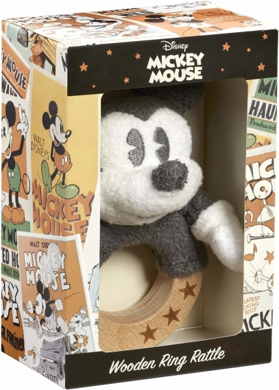 Objavte ideálnu prvú hračku pre bábätko: hrkálku s ikonickým MICKEY MOUSE na pevnom bukovom krúžku so zdobením hviezdičiek. Vďaka mäkkému plyšu a hladkému drevu je bezpečná, príjemná na dotyk a podporuje rané zručnosti.