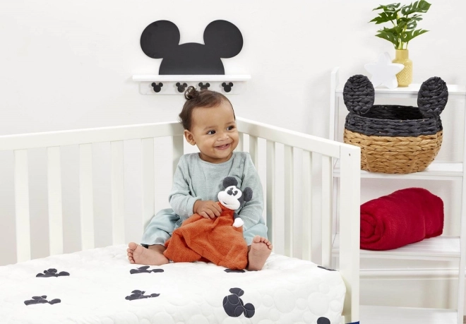 Muchláčik MICKEY MOUSE spája obľúbenú postavičku a hebkú maznaciu dečku pre maximálny komfort. Hmatové prvky ako ikonické čierne ušká a nos prirodzene motivujú deti k objavovaniu, rozvíjajú ich zmysly a podporujú rané motorické zručnosti. Mäkučký materiál poskytuje pocit bezpečia doma aj na cestách.