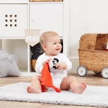 Hmatové uzlíky v rohoch a ikonické ušká podporujú rozvoj jemnej motoriky a zvedavosť najmenších.