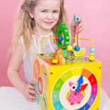 Multifunkčná motorická kocka od značky Bino je kvalitná drevená hračka pre najmenších, ktorá rozvíja jemnú motoriku, logické myslenie a sústredenie. Ponúka rôzne aktivity na každej stene, vrátane vhadzovania a vkladania tvarov. Je vyrobená z kvalitného dreva a opatrená nezávadnými farbami spĺňajúcimi normy EÚ.