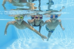 Odolné polykabonátové šošovky s UV filtrom chránia oči pred slnkom a chlórovanou vodou.