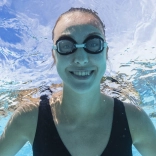 Odolné šošovky zabezpečujú jasný výhľad pod vodou a chránia zrak pred slnkom pri vonkajších bazénoch.