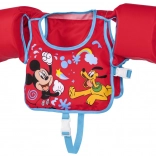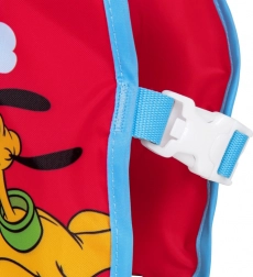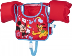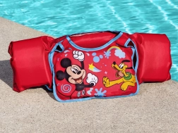 Textilný, rýchloschnúci materiál je na dotyk príjemný a oproti gume sa nelepí na pokožku. Veselý motív Mickey Mouse a Pluto deti motivuje k hrám aj k výučbe plávania a výrazná červená farba zvyšuje viditeľnosť vo vode. Odporúčaný obvod hrudníka je 56 cm. Vesta je určená na používanie iba vo vode, v dosahu dospelej osoby.