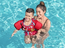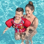 Obľúbené postavičky deti motivujú k vodným hrám a učeniu. Jasná červená s modrými detailmi zlepšuje viditeľnosť pri vode.