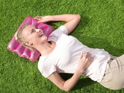 Vankúšik je vybavený bezpečnostným ventilom, ktorý bráni samovoľnému unikaniu vzduchu. Ergonomické rebrovanie na povrchu zvyšuje pohodlie pri ležaní aj sedení. Počas dňa poslúži ako mäkká podložka, v noci ako praktický vankúš na spanie – bez nutnosti používať pumpičku.