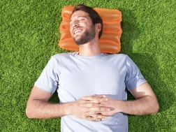 Oprite hlavu o mäkký vankúšik pri odpočinku na tráve, pláži alebo pri vode. Ľahký a ľahko prenosný, ideálny na relax v prírode.