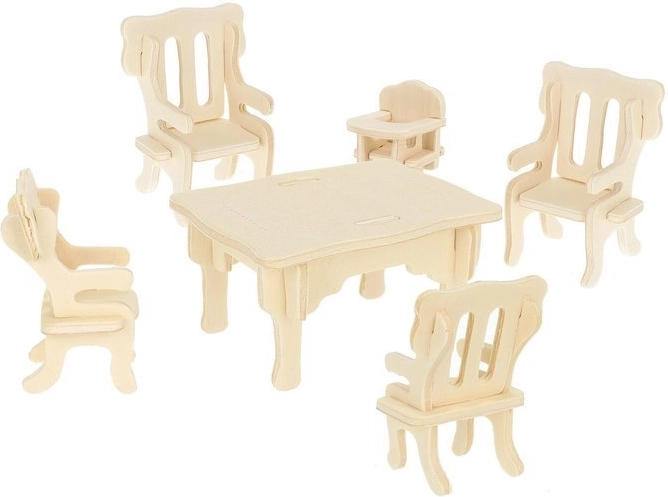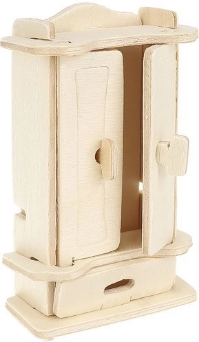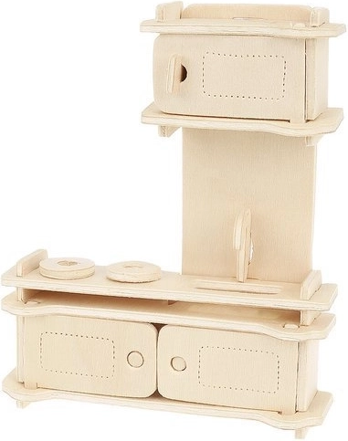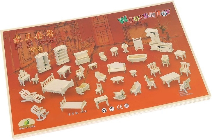 Táto univerzálna drevená sada nábytku premení každý domček pre bábiky na plne vybavený domov. Diely sa skladajú ako 3D drevené puzzle, takže deti zapoja zručnosť aj predstavivosť. Pohyblivé prvky (napr. otváracie dvierka skrine) robia hru realistickejšou a zábavnejšou.