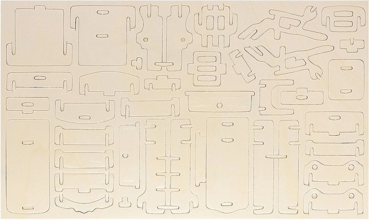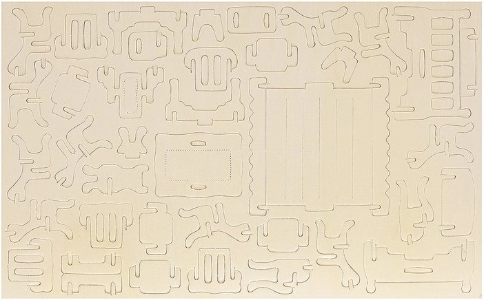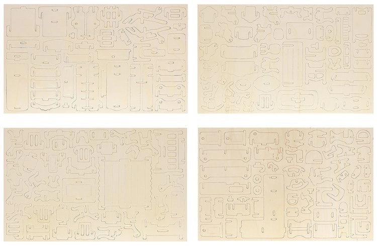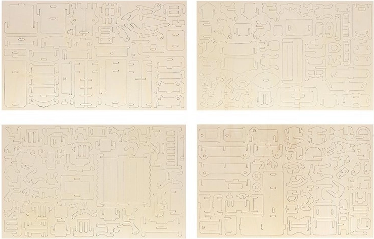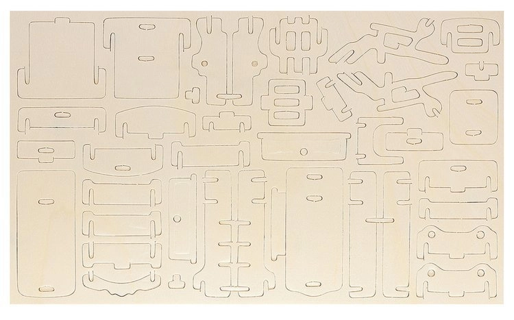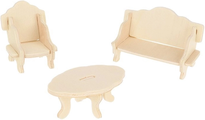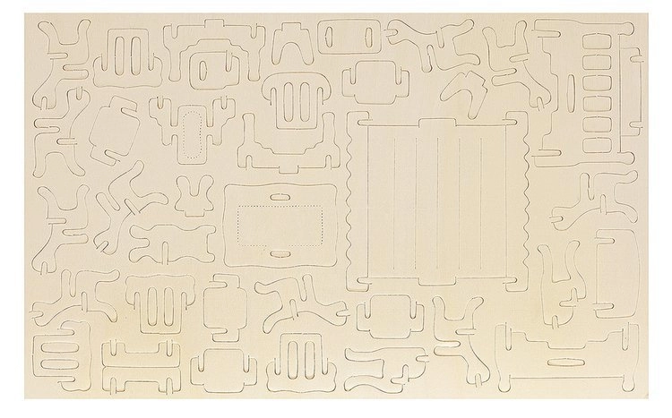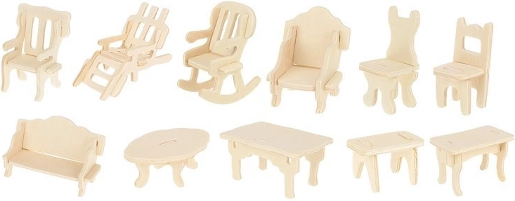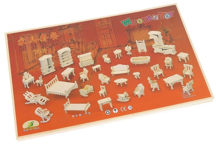 Jednotlivé diely sa ľahko skladajú do priestorových modelov. Vďaka prírodnému povrchu možno nábytok maľovať a zdobiť podľa fantázie.