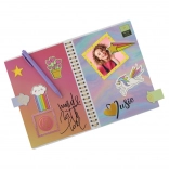 Vytvorte si svoj jedinečný denník s motívom jednorožca a uchovajte si všetky krásne spomienky. Sada obsahuje všetko potrebné na tvorbu a zdobenie – od samolepiek po trblietavé kamienky – takže si môžete svoj diár ľahko prispôsobiť. Ideálne pre deti aj kreatívne duše, ktoré chcú mať originálny a osobný denník plný príbehov, fotografií a doplnkov.