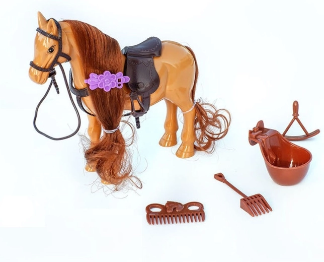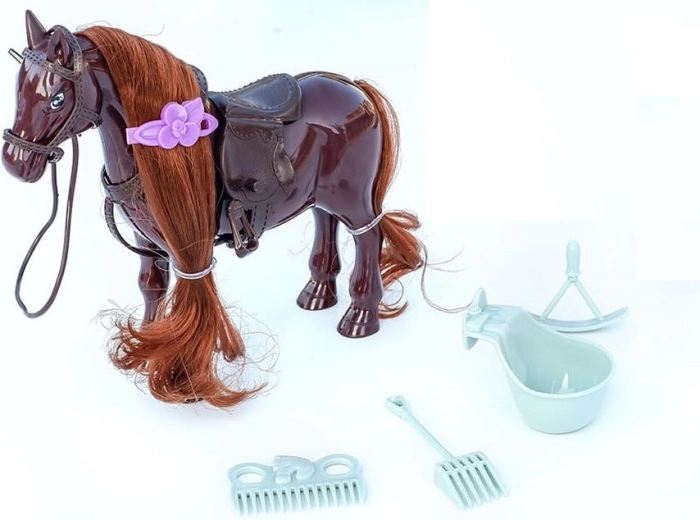 Objavte svet fantázie s koníkom, ktorý je pripravený na každodennú starostlivosť aj parádenie. Vďaka priloženým doplnkom si deti precvičia jemnú motoriku a rozvinú svoju kreativitu pri česaní a zdobení hrivy.
