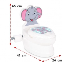 Nočník v tvare skutočnej toalety so sloním motívom premení učenie na nočník na zábavu. Vďaka ergonomickému sedáku a stabilnému prevedeniu sa deti cítia bezpečne a pohodlne, čo podporuje pravidelné používanie a rýchlejší prechod z plienok.