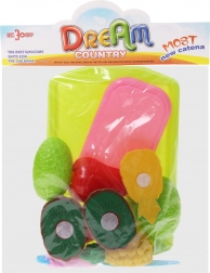 Zábavná kuchynská hračka pre malých kuchárov: súprava na krájanie ovocia s bezpečnými plastovými dielmi a praktickou táckou. Podporuje jemnú motoriku, koordináciu oko–ruka a hravú fantáziu bez rizika poranenia.