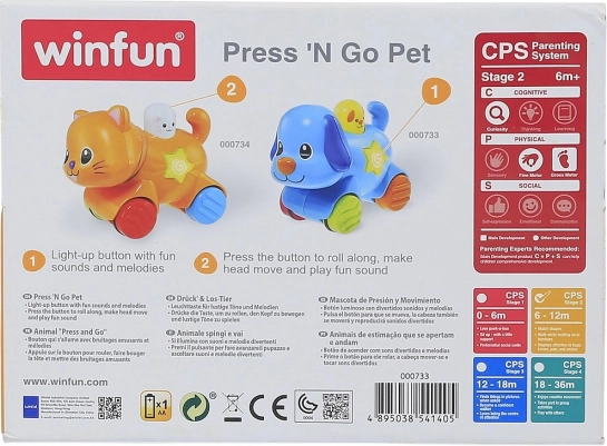 Mačka Press 'N Go Pet je skvelá hračka pre rozvoj zmyslov a motorických schopností vďaka svojim interaktívnym prvkom a zvukovým efektom.