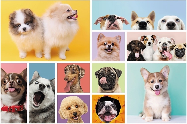 Puzzle zobrazujú rôzne plemená psov na farebných pozadiach, čo ešte viac umocňuje vizuálny zážitok.