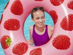 Hravý dizajn s realistickými malinami zaujme v bazéne aj pri mori a dodá vášmu letu výrazný look.