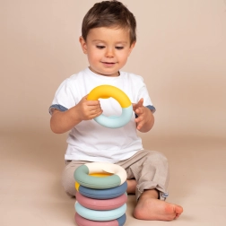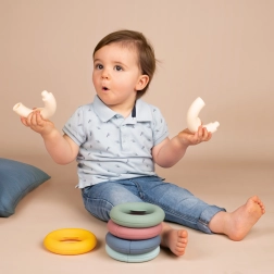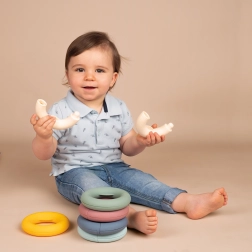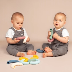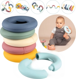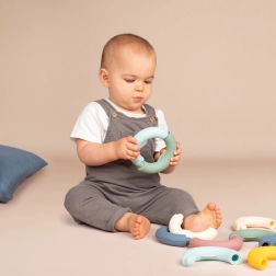 Vďaka špeciálnemu tvaru krúžkov deti ľahko precvičia jemnú motoriku a koordináciu rúk pri hre.