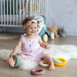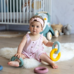 Navrhnuté pre bezpečné používanie malými deťmi, krúžky sú ideálne na manipuláciu aj sedenie na podlahe.