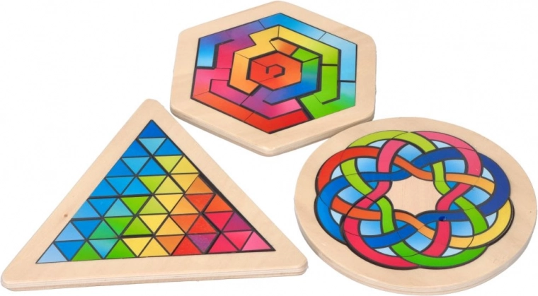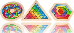 Farebné dieliky vytvárajú prehľadné vzory aj zložitejšie ornamenty. Deti si precvičia predstavivosť a vnímanie farieb i tvarov.