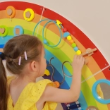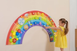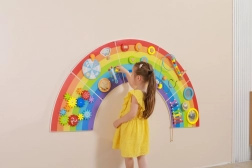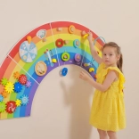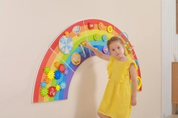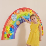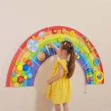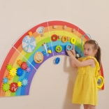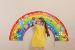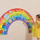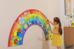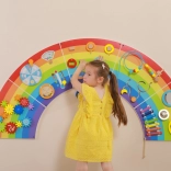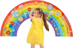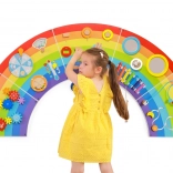 Táto veľká dúhová aktívna tabuľa je ideálnym prvkom do detských izieb, herní aj vzdelávacích priestorov. Deti si môžu hravou formou precvičovať koordináciu ruka–oko, trénovať trpezlivosť a objavovať farby, tvary, zvuky aj počasie. Zakrivený tvar podporuje súčasnú hru detí rôznej výšky.