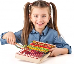 Tkanie na drevenom stave podporuje koordináciu oko–ruka, trpezlivosť a predstavivosť. Deti sa zábavnou formou zoznamujú so základmi textilných techník.