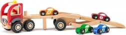Drevený autoprepravník so 4 pretekárskymi autíčkami