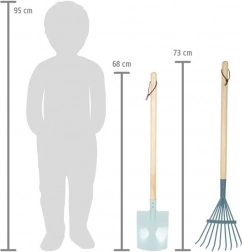 Každý kus je vyrobený z kombinácie dreva a kovu pre dlhú životnosť. Pútka na rukovätiach umožňujú jednoduché zavesenie a prehľadné uloženie. Využijete ich ako na záhonku a trávniku, tak aj na pieskovisku alebo pláži.
