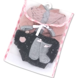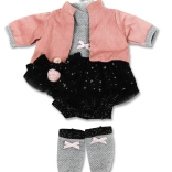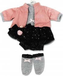 Prineste svojim bábikám nový štýl s týmto nádherným oblečením pre bábiku Llorens. Táto 4-dielna súprava zahŕňa krásnu gumičku s mašľou navrhnutú pre bábiky o veľkosti 35 cm. Tento detailný komplet podporuje kreatívnu hru a zároveň prináša eleganciu. Vyrobené ručne v Španielsku, každý kus je jedinečný. Balenie obsahuje plastový vešiak pre praktické skladovanie.