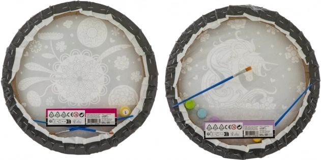 Objavte relaxačnú kreativitu s praktickou sadou na maľovanie podľa čísel vo formáte kruhového obrázka s priemerom 30 cm. V balení nájdete všetko potrebné: 6 vodových farieb a 2 štetce (plochý a okrúhly). Na výber sú 2 motívy – mandala a jednorožec, ideálne pre začiatočníkov aj pokročilých.