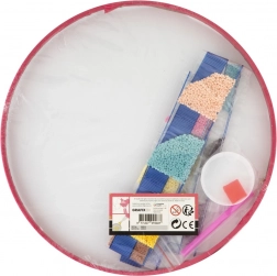Súčasťou balenia je drevený rám s napnutým plátnom, takže hotové dielo môžete ihneď vystaviť. Kompletná sada obsahuje všetky nástroje aj sadu farebných kamienkov – stačí odlepiť ochrannú fóliu postupne po častiach, nabrať vosk do pera a začať tvoriť.