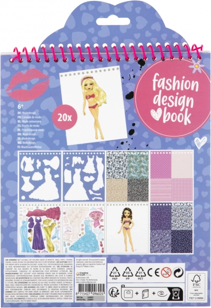 Súčasťou knihy sú šablóny na obkresľovanie postáv a doplnkov, samolepky na rýchle dotvorenie looku a dostatok stránok na vlastné návrhy. Kompaktný rozmer uľahčí prenášanie do školy, na krúžok aj na prázdniny.