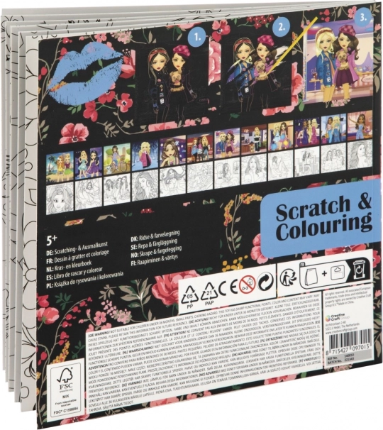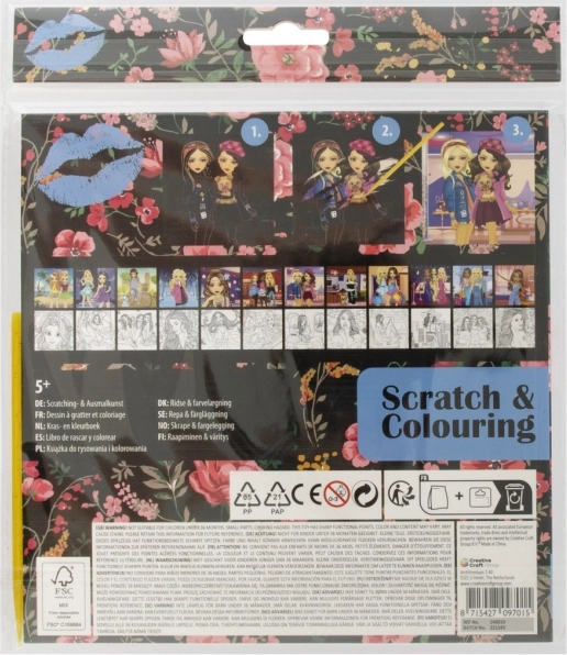 Táto štýlová kreatívna sada kombinuje scratch art a omaľovánky s módnymi motívmi kamarátok. Deti môžu plastovým perom vyškrabávať prekryvnú vrstvu a odhaľovať žiarivé farby, alebo vyfarbovať predlohy podľa vlastnej fantázie. Zábava, ktorá rozvíja predstavivosť a podnecuje zmysel pre detail.
